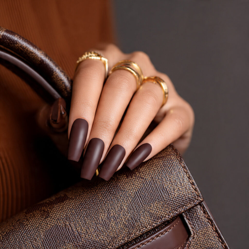 The Power Coffin: “Bold, edgy, and perfect for long nails. The go-to for a ‘Boss Babe’ vibe.”