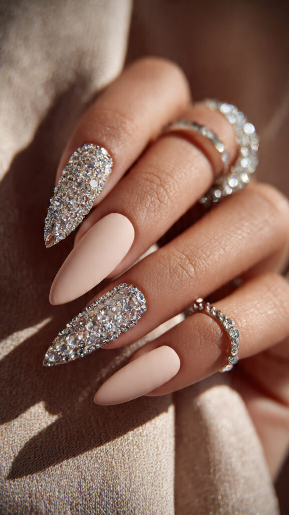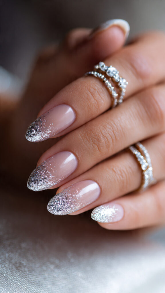 Add some sparkle to your life. A glamorous fade of fine silver or gold glitter on the tips.