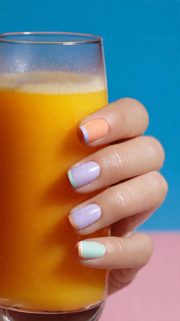 Cheerful, trendy, and perfect for summer. Each tip features a different soft pastel shade for a playful vibe.